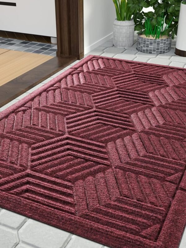Front Entrance Door Mat, All-Season Heavy Duty Outdoor Indoor Entryway Floor Mat, Natural Rubber, Non Slip, Resist Dirt, Water Absorption, Easy Clean, 36X24 Inch, Red