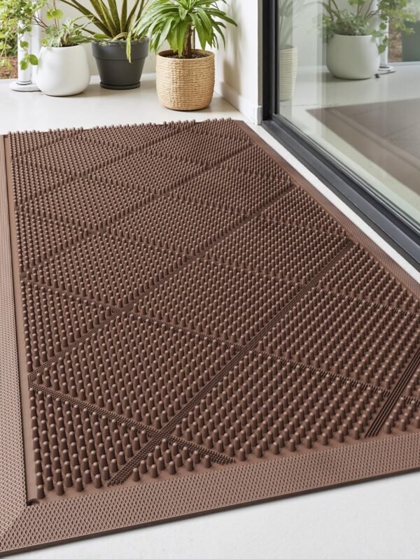 Front Door Mats Outside Entrance, 17x36 Rubber Waterproof Dirt Trapping Entry Mat for Entryway, Heavy Duty Non-Slip Low-Profile Welcome Doormat All Weather for Patio, Brown