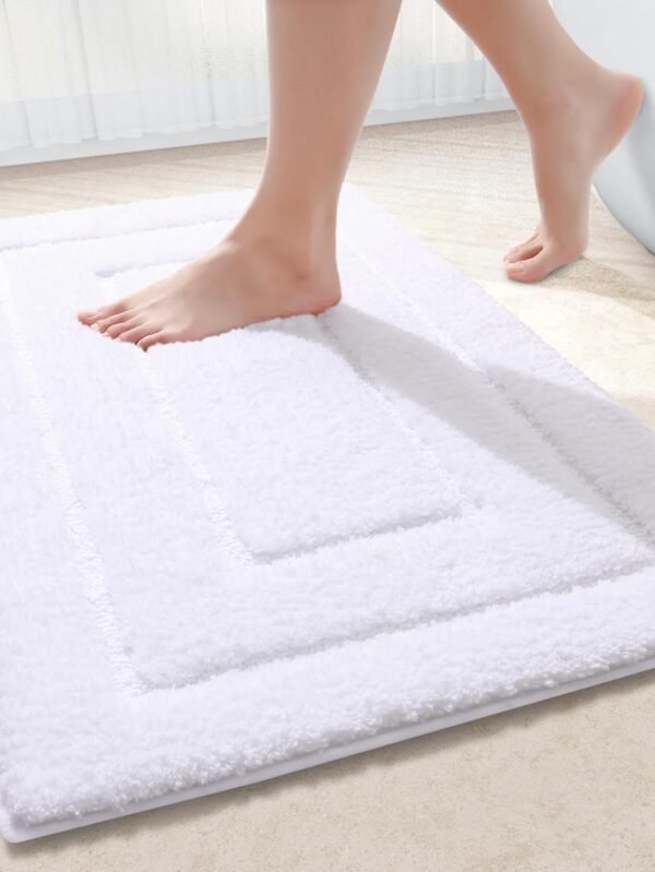 Bathroom Rugs, 30" x 20", Soft and Absorbent Microfiber Bath Rugs, Non-Slip Shaggy Shower Carpet, Machine Wash Dry Bath Mats for Bathroom Floor, Tub and Shower, White