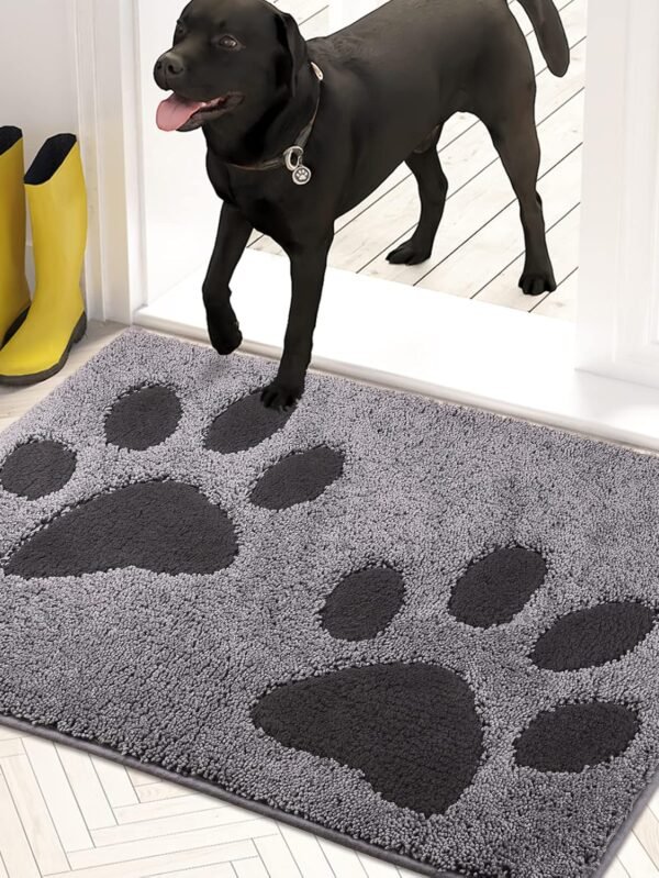 Dog Bathroom Rugs Mat for Muddy Paws, Absorbent Non Slip Quick Dry Washable Chenille Mat for Mud Dogs, Entry Rug for Indoor and Outdoor (30x20 Inches, Grey)