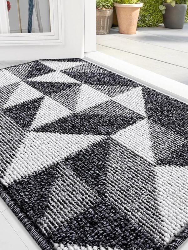 Bathroom Rugs Mat Indoor Entrance Washable 32x20, Odor-Free Low-Profile Front Back Geometric Floor mats, Absorbent Resist Dirt Entry Carpet, Easy to Clean Sturdy Inside Floor Mats for Entryway, Black