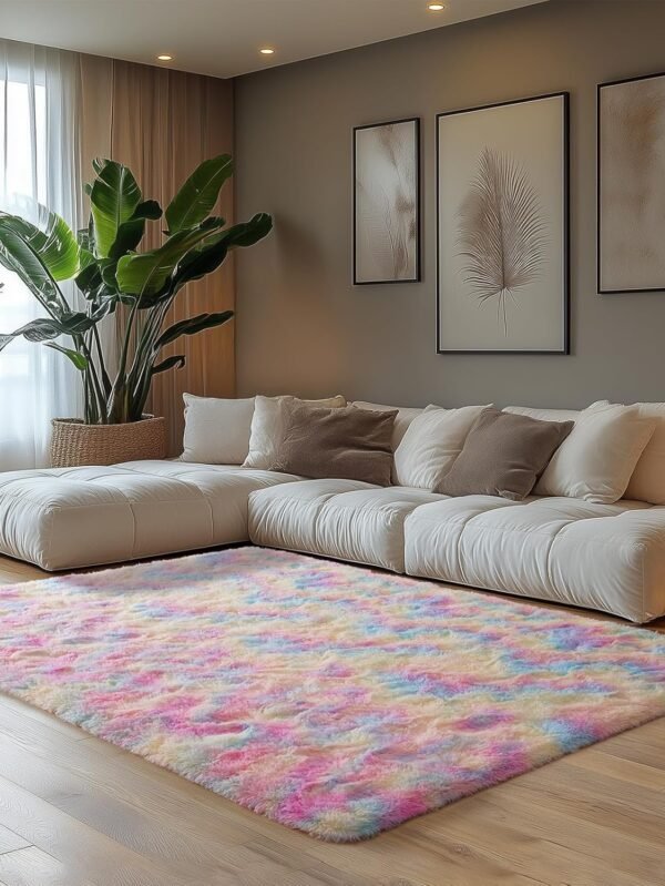 Soft Area Rugs for Living Room Bedroom 4x6 Feet Fluffy Fuzzy Furry Shaggy Aesthetic Carpet Plush High Pile Floor Rug for Nursery Kids Room Dorm Home Decor Rainbow
