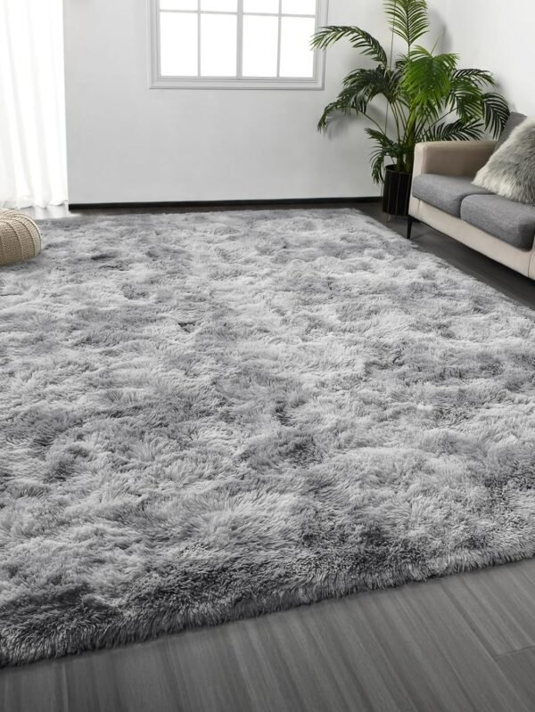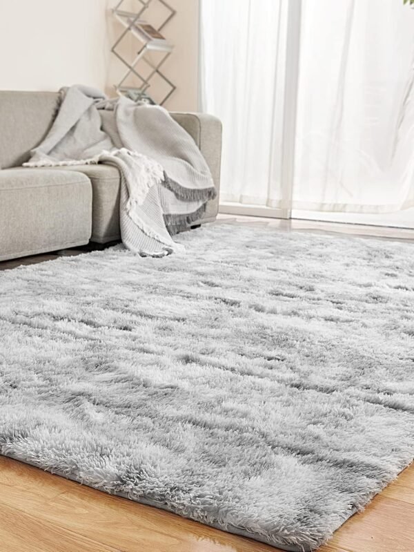 Large Shag Area Rugs 6 x 9, Tie-Dyed Plush Fuzzy Rugs for Living Room, Ultra Soft Fluffy Furry Rugs for Bedroom, Indoor Carpet Nursery Rugs for Kids Room Home Decor, Light Grey