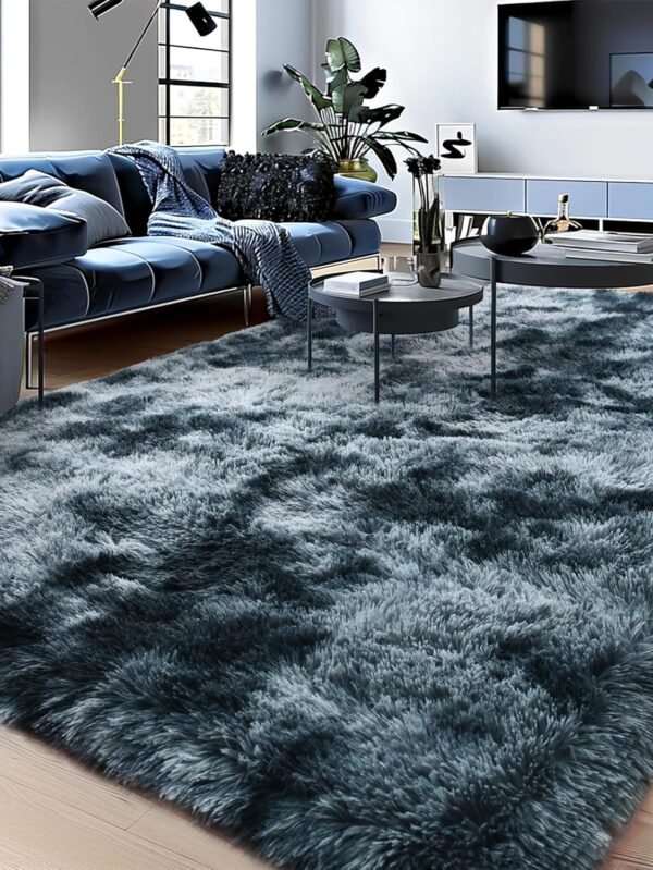 Fluffy Rug for Living Room,Furry Carpet for Teen,Shaggy Rug for Nursery Room, Tie-Dyed Blue Grey Fuzzy Plush Rug for Dorm, Rectangle Shag Rug 6x9 Feet