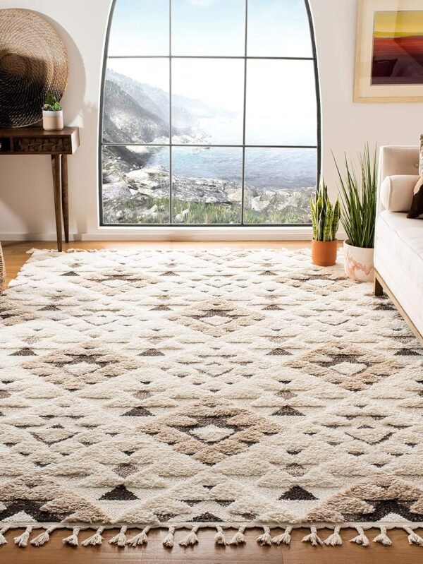 Moroccan Tassel Shag Collection Area Rug - 8' x 10', Ivory & Brown, Boho Design, Non-Shedding & Easy Care, 2-inch Thick Ideal for High Traffic Areas in Living Room, Bedroom
